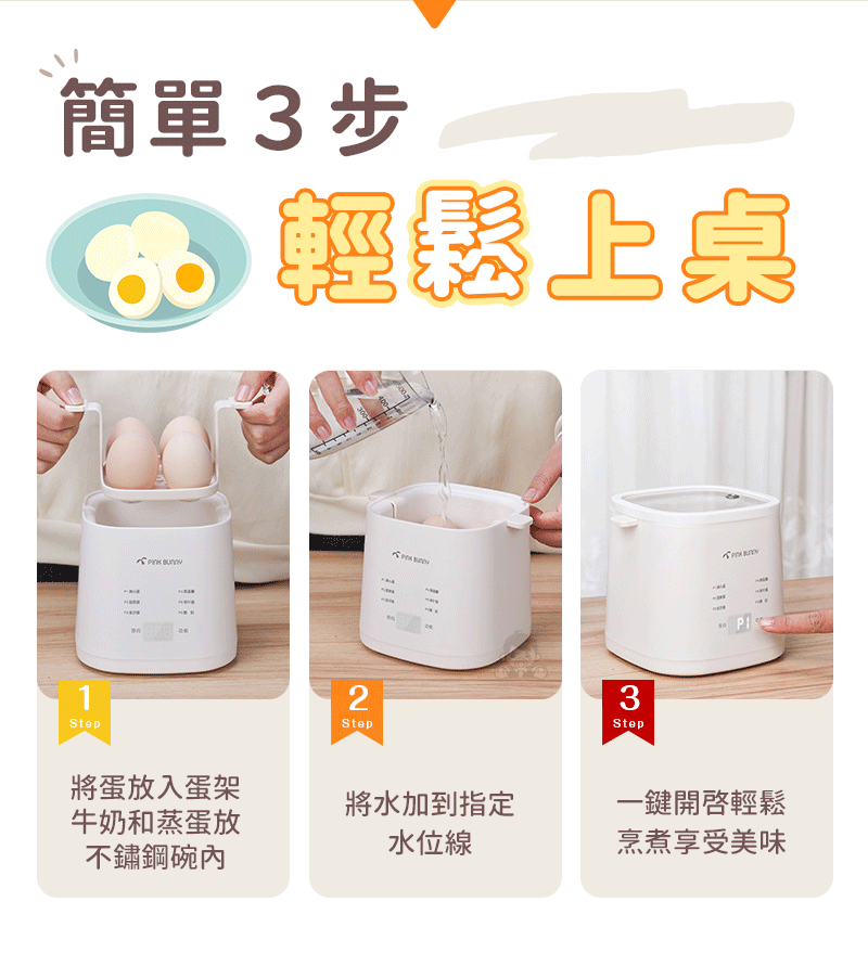 25分鐘前Pink Bunny智能煮蛋機智能控溫烹煮,營養美味輕鬆上桌 - Pink Bunny智能煮蛋機1入組 NT$1090